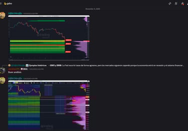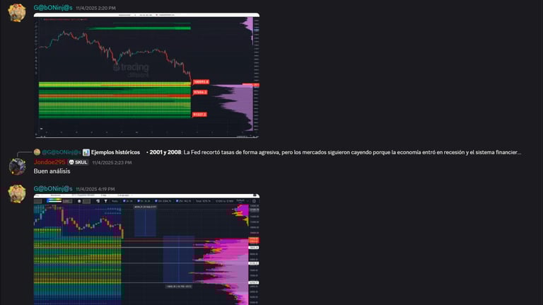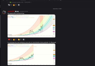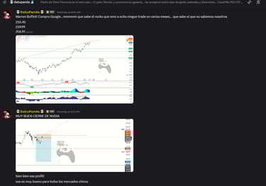 Los diferentes miembros realizan un análisis y seguimiento en tiempo real de las operaciones y proyecciones que se dan en los canales de Discord